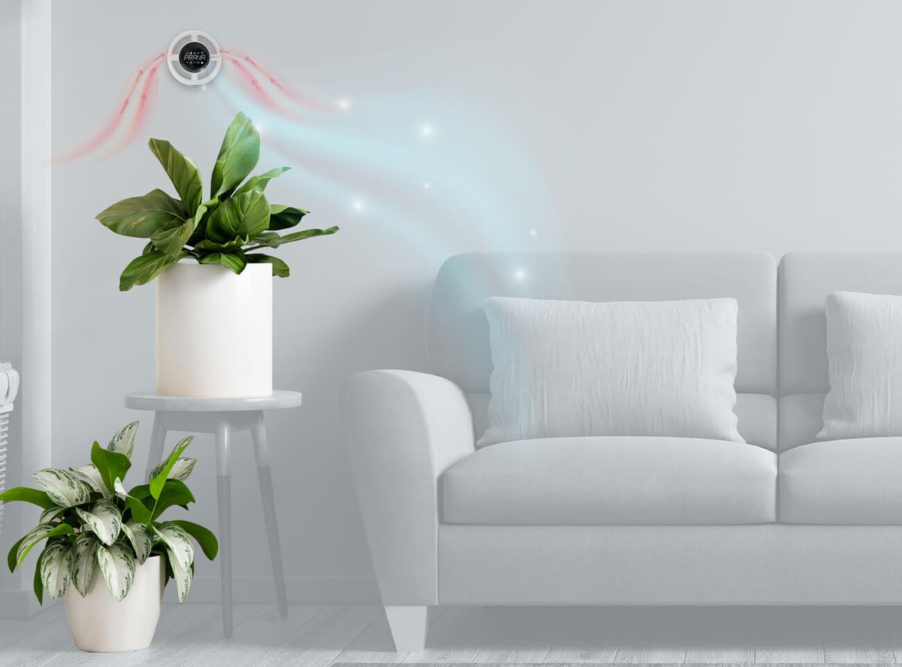 PRANA ERP PRO dispose également d’un capteur TVOC qui sonde la quantité de composés organiques volatils présents dans l’air à l’intérieur du local. Il intervient également lorsque le système fonctionne en mode automatique. Cela permet aux VMC PRANA ERP PRO d’ajuster leur fonctionnement lorsque le niveau de substances organiques volatiles augmente. Cette augmentation est observée, par exemple, lors de l’utilisation de parfums ou de produits chimiques ainsi qu’à l’achat de nouvelles pièces du mobilier ou lors de travaux à l’intérieur du local.
